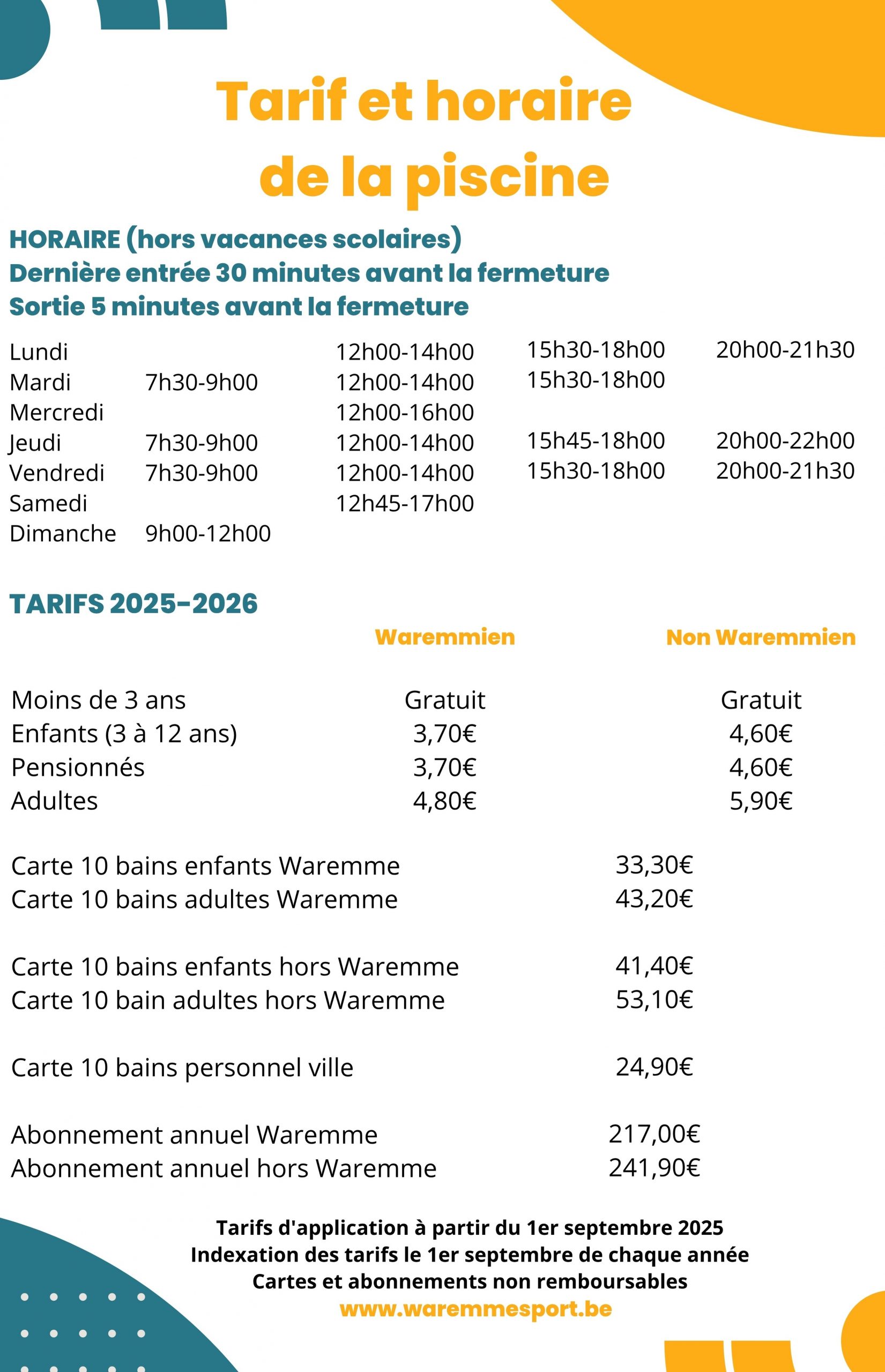 Horaire et tarifs de la piscine (hors vacances scolaires et jours fériés) Short interdit Bonnet obligatoire Interdit aux enfants de moins de 8 ans NON ACCOMPAGNES Douche obligatoire